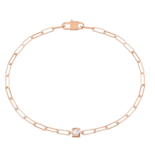 Náramek Le Cube Diamant large z růžového zlata s diamantem. Minimalistický design na řetízku spojuje kruh a čtverec, zatímco centrální diamant vyniká čistotou a elegancí.