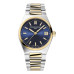 Ocelový náramek v kombinaci ocel / žluté zlato. Celková délka 158 mm. Překlápěcí spona s tlačítky. Šířka spony 15 mm, šířka řemínku 21.5 mm. Dodatečný řemínek: modrý gumový 19.5 × 14 mm.