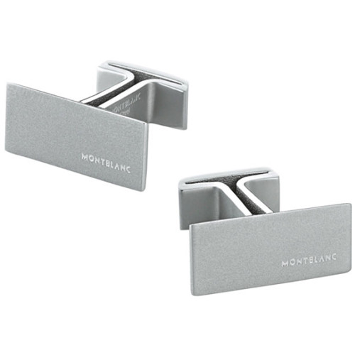 Montblanc M Steel manžetové knoflíčky z broušené nerezové oceli s leštěnými hranami. Moderní obdélníkový design s gravírovaným logem Montblanc podtrhuje decentní eleganci.