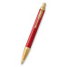 Dárková kazeta s kuličkovým perem Parker IM Premium Red GT s červeně lakovaným mosazným tělem s reliéfní rytinou vytvořenou laserem. V kombinaci s doplňky pokovenými zlatem.