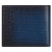 Tato peněženka z celokožené telecí kůže s reliéfním patinovaným krokodýlím vzorem v ruce nabízí jedinečné modré odstíny.