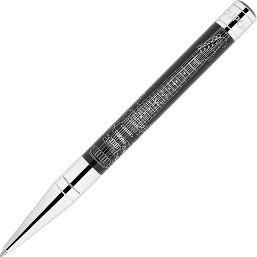 Kuličkové pero Initial v lesklém černém laku zdobené kytarou Stratoscaster®. Chromové povrchové úpravy.