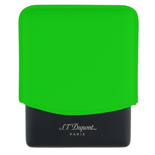 Luxusní pouzdro na cigarety. Vyrobeno z fluorescenčně zelené teletiny s matnou černou kovovou základnou. Kolekce Fluo přináší novou energii do klasiky S.T. Dupont – legendární lak se stává popovým a lehkým, pro dynamický život neustále v pohybu.