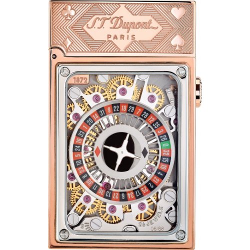Na lesklé mosazi Casino Pocket Complication zapalovače jsou vyryty prvky: hrací stůl, karty a žetony, díky čemuž budete v noci myslet na nikdy nespící kasino. V rámci jemného mikro-mechanismu je 26 hodinových rubínů integrováno tak, aby se zajistil nejlepší výkon. Skleněné okénko umožňuje vyniknout úchvatnému ruletovému mechanismu zabarvenému lakem S.T. Dupont. Zapalovač poskytuje dvojitý měkký plamen s dobíjením červeného plynu a červeným kamínkem pro zajištění výkonu. Zapalovač je dostupný v paládiu, žlutém zlatě a růžovém zlatě, přičemž je balen v kostkovém humidoru s černým matným povrchem.