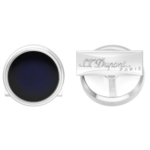 S.T. DUPONT - ROUND CHROME SILVER BLUE - Manžetové knoflíčky